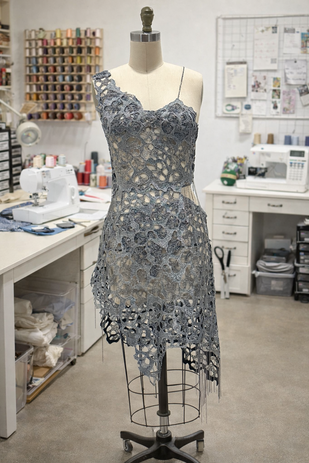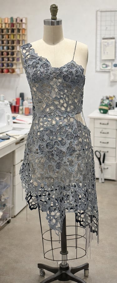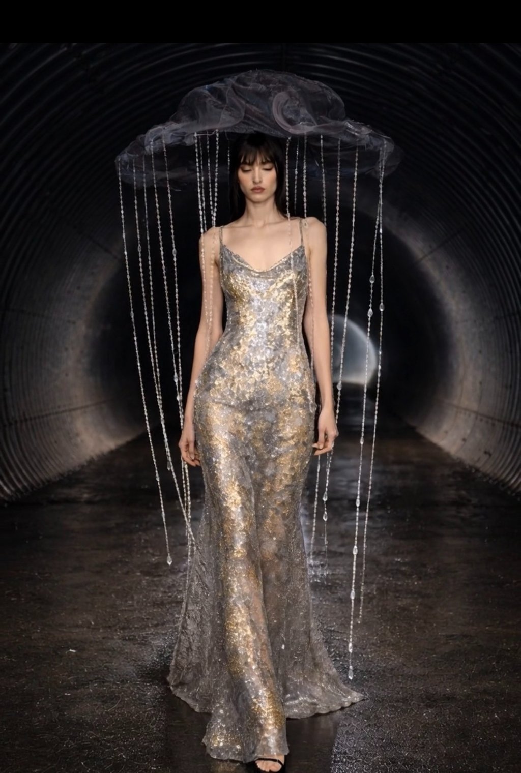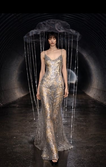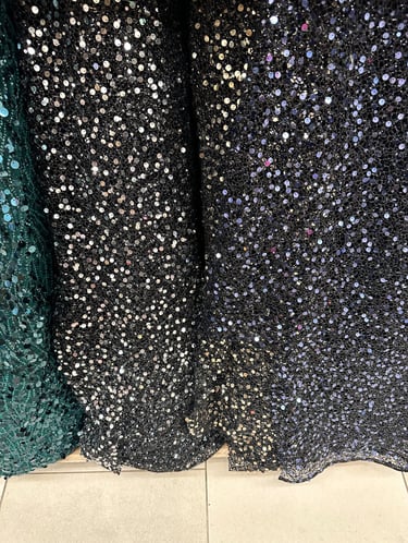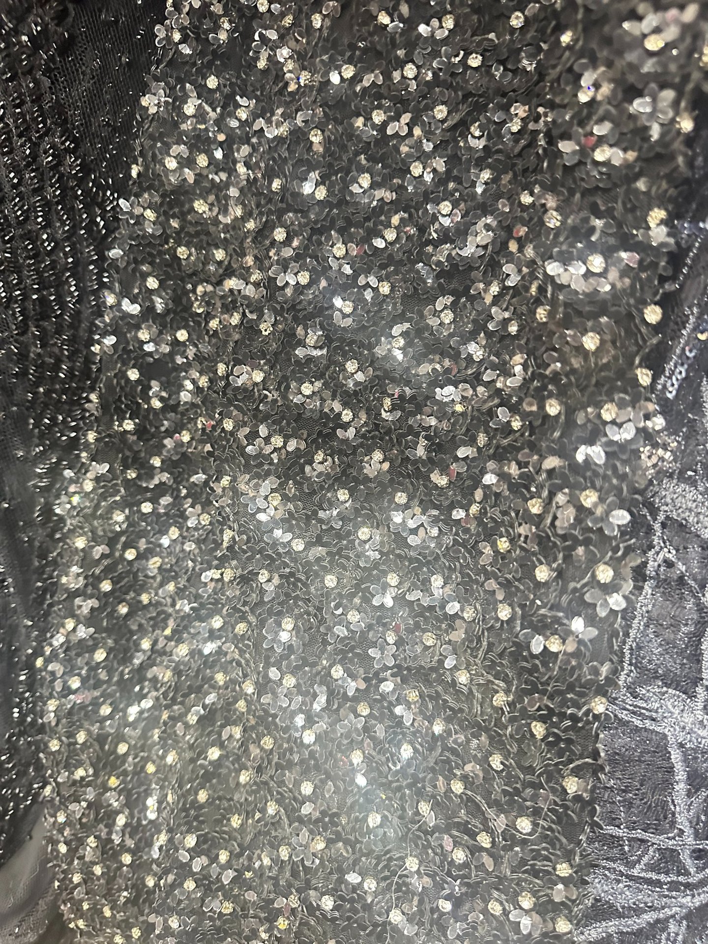 SPECIAL FABRIC, METALLIC EMBROIDERED, RECTANGULAR SEQUINS THAT MIMIC A MIRROR EFFECT